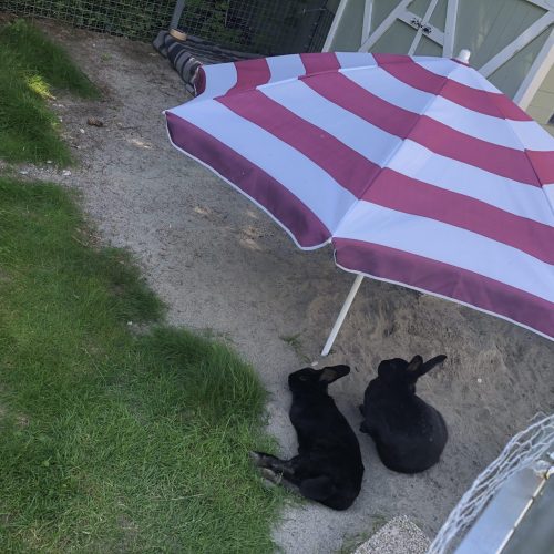 Vi tror at Gaba og Georg trenger et hjem hos noen som finner gleden i å se kaniner utfolde seg som kaniner, som ser verdien i å hjelpe noen som virkelig fortjener det som mest, og som kan gi dem en god alderdom i en stor luftegård hvor de kan få lov å fortsette å fremme god helse gjennom sin gravemaskinvirksomhet.