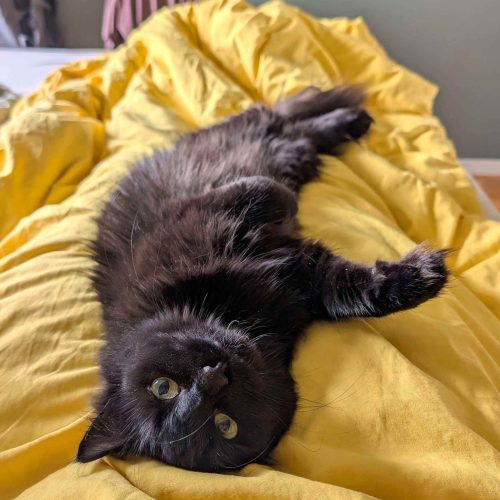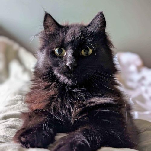 Hei, jeg heter Felina! Jeg elsker kos, og viser det gjerne ved å stryke meg rundt bena dine og gi deg små, kjærlige «headbumps». Hvis jeg får flytte til deg, kommer jeg nok til å legge meg i fotenden av sengen din – og med tiden vil du kanskje våkne med meg sovende ved siden av deg.