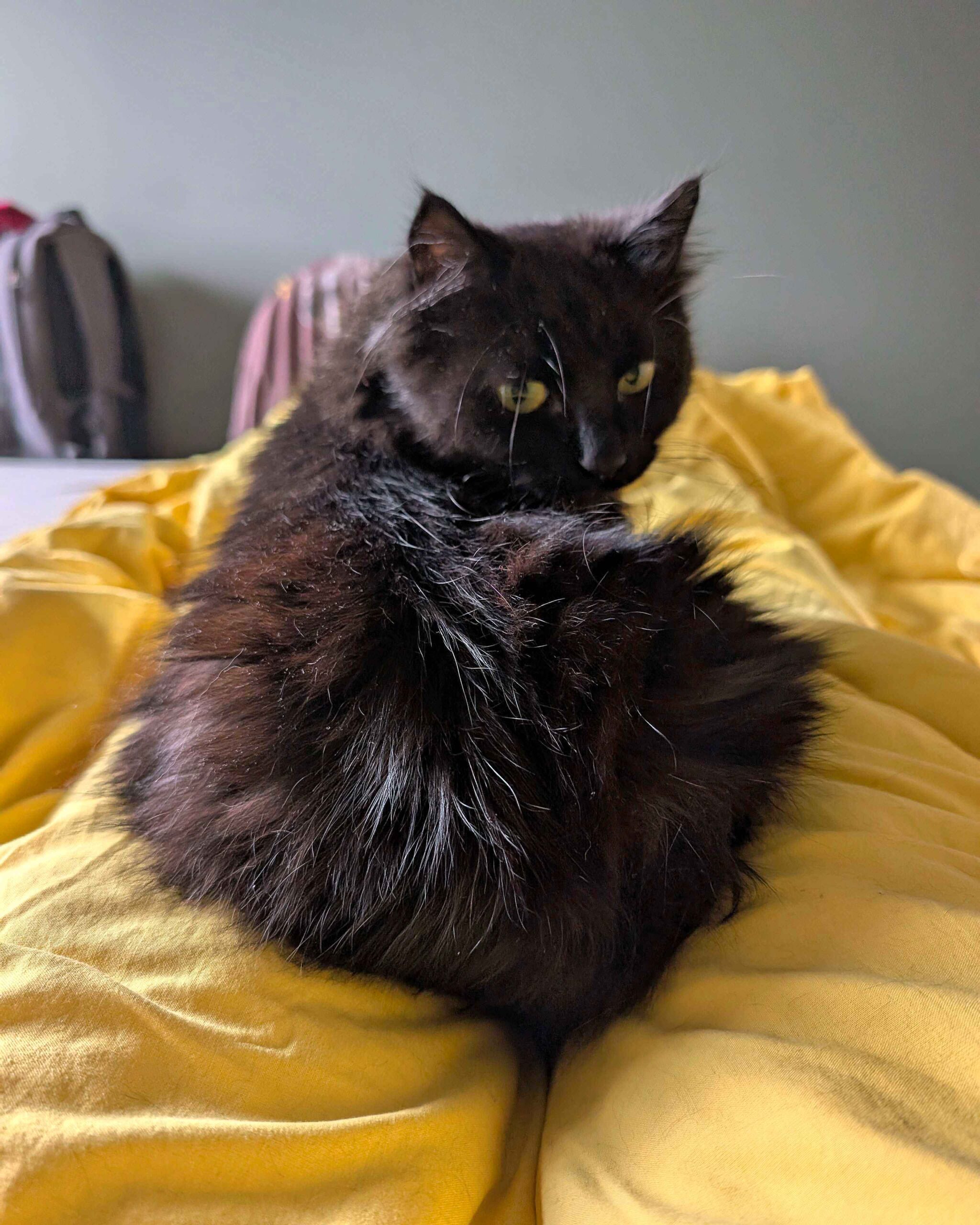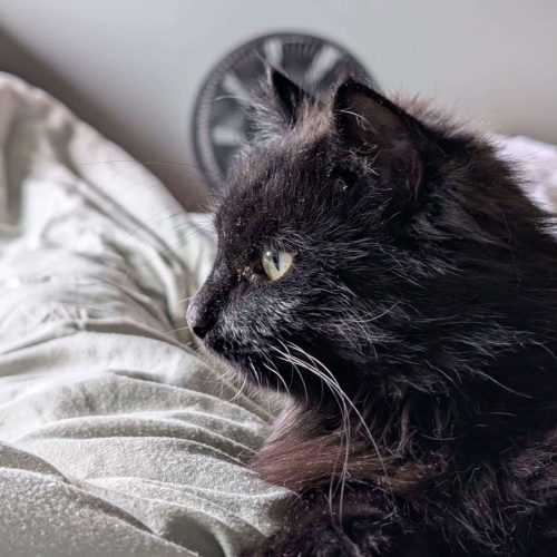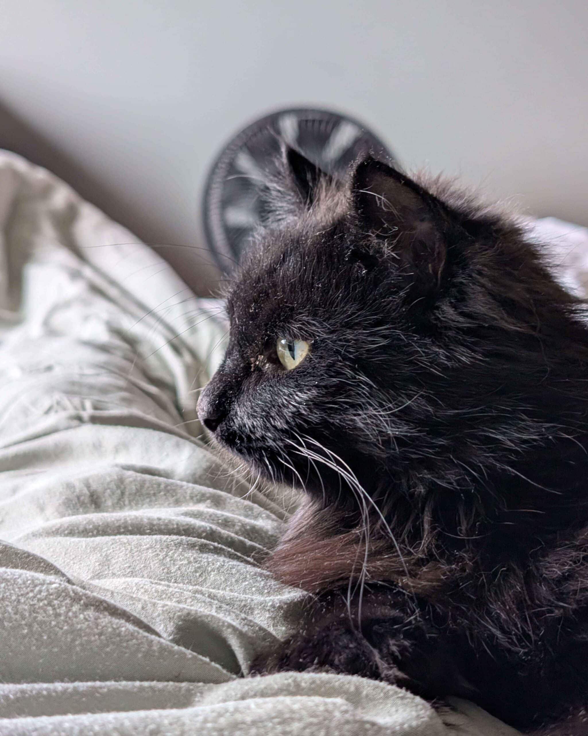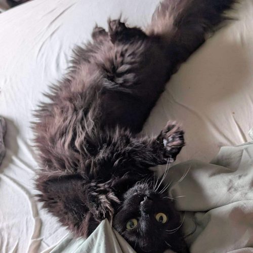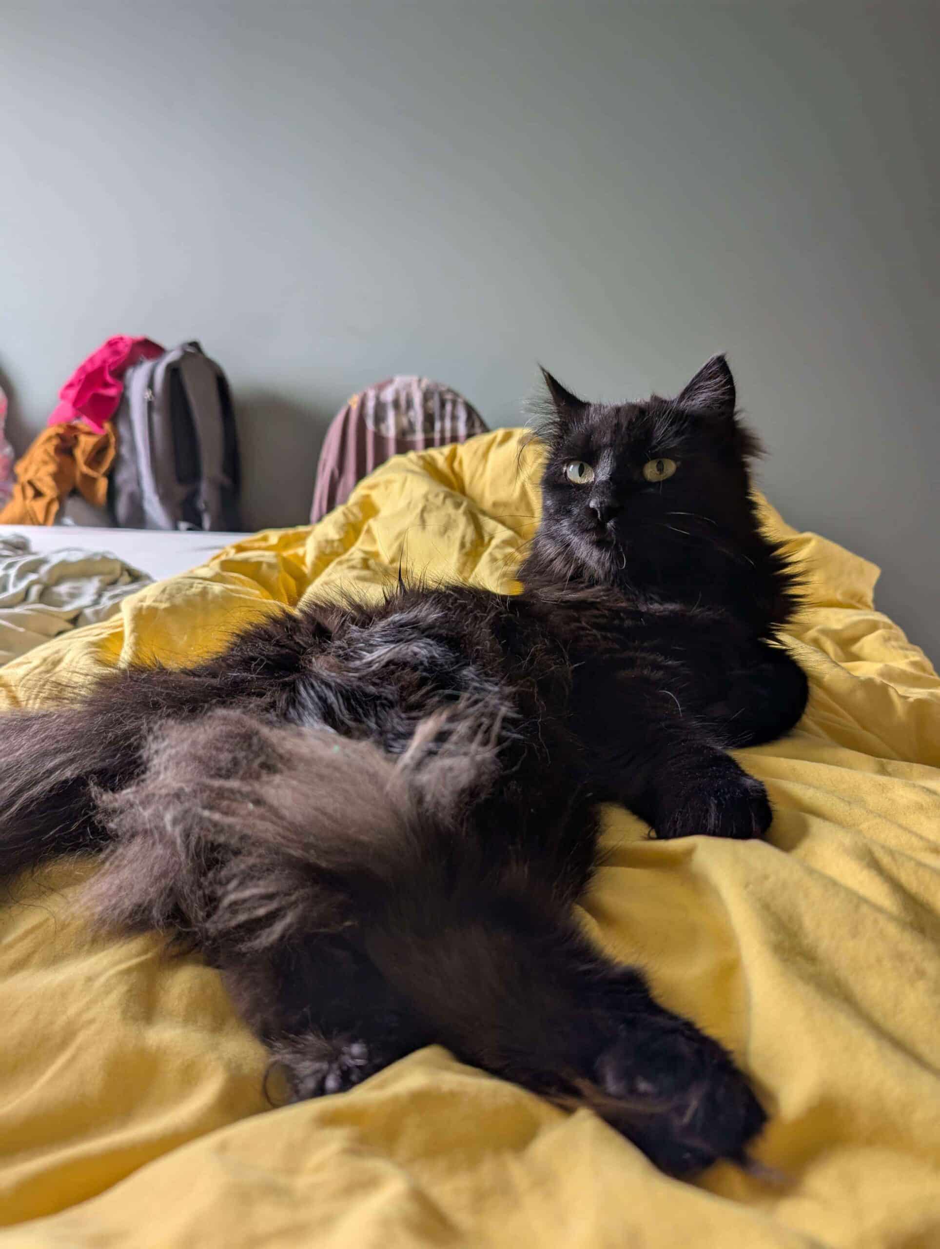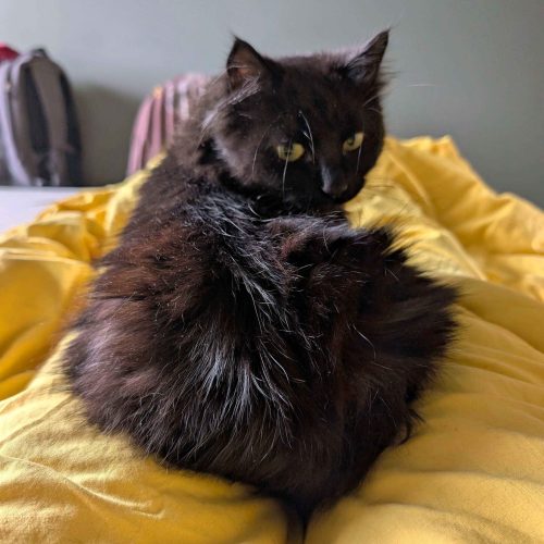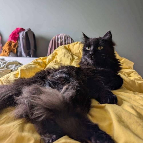 Jeg er ikke så glad i å bli båret rundt, men det går fint å plukke meg opp raskt hvis det trengs – da rekker jeg ikke å protestere. Jeg har bodd sammen med to andre katter, og selv om jeg syntes det var litt skummelt i starten, har jeg blitt mye tryggere. Jeg gjemmer meg ikke, og trekker meg ikke unna – så jeg tror jeg kan trives med andre katter i fremtiden.